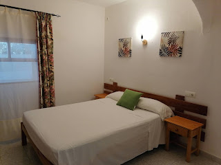 Habitación para 2 persona con nevera, aire acondicionado, caja fuerte, TV y baño reformado privado. Tienen balcón.